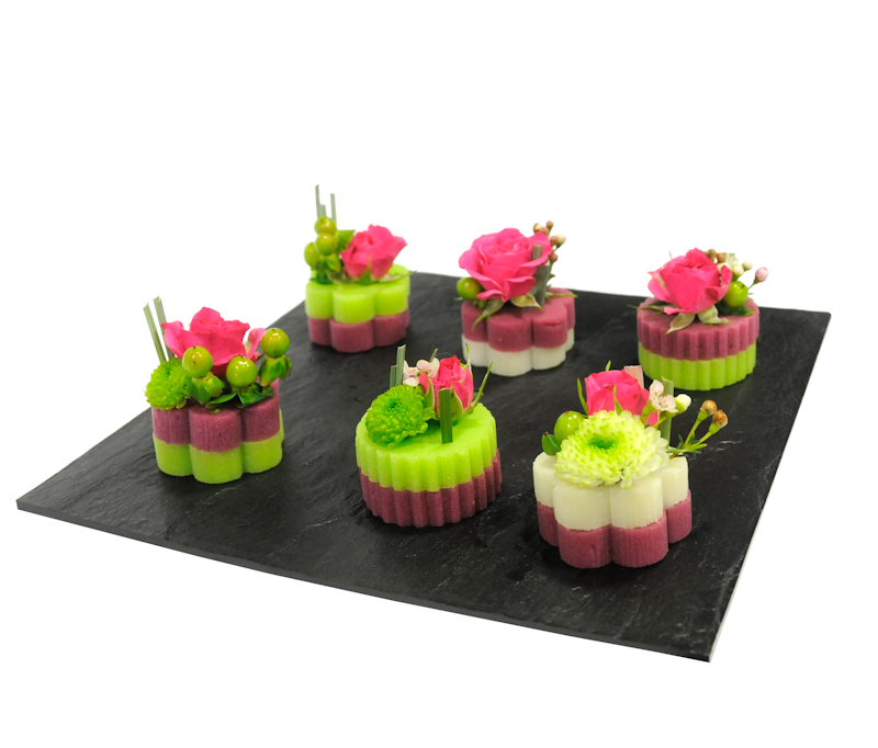 Des petits amuses bouche fleuris, pour un décoration en trompe l’œil.